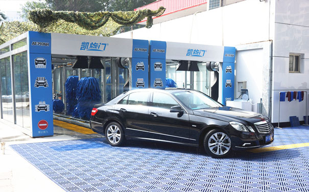 隧道式洗車原理是将車停在傳送帶上,由傳送帶帶動車子從洗車機的入口進,出口出,完成洗車指令。(設備不動,車動)