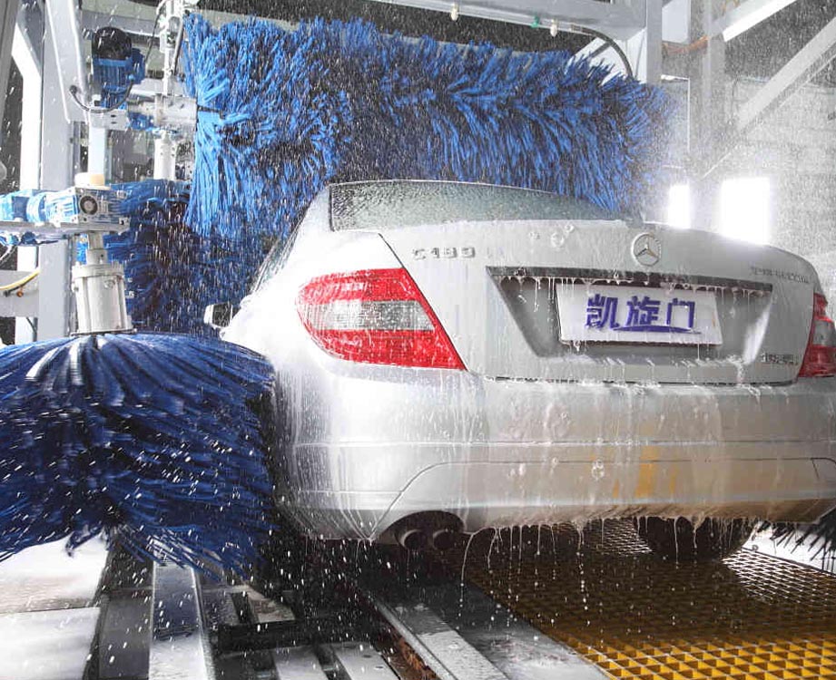 往複式洗車原理是将車停在洗車設備中心,設備在軌道上往複運行完成整個洗車過程。(車不動,設備動)