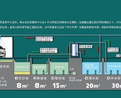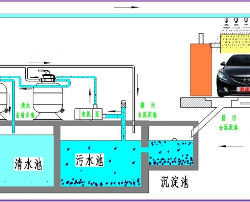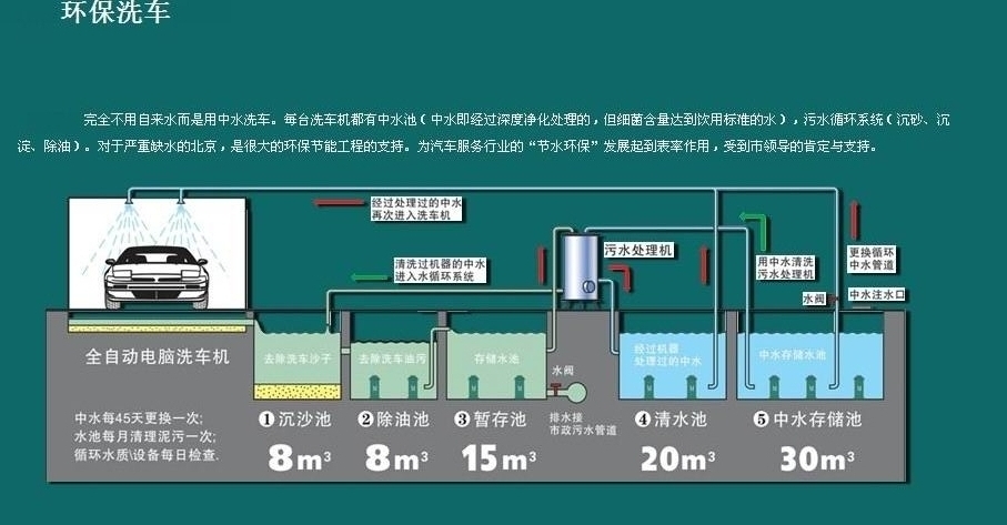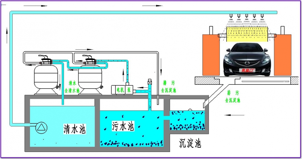 - 洗車循環水系統UItraCIean 在回收水方面将變得輕松經濟,洗車後廢水流入初沉澱池,大顆粒物體在此驚醒絮凝沉澱